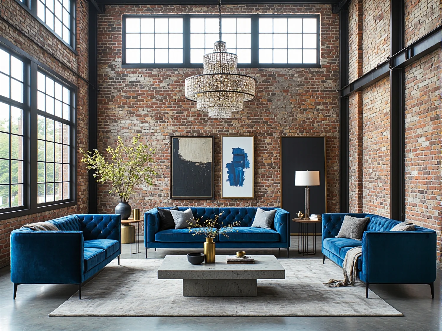 1. Aksamitne meble na tle betonowej ściany