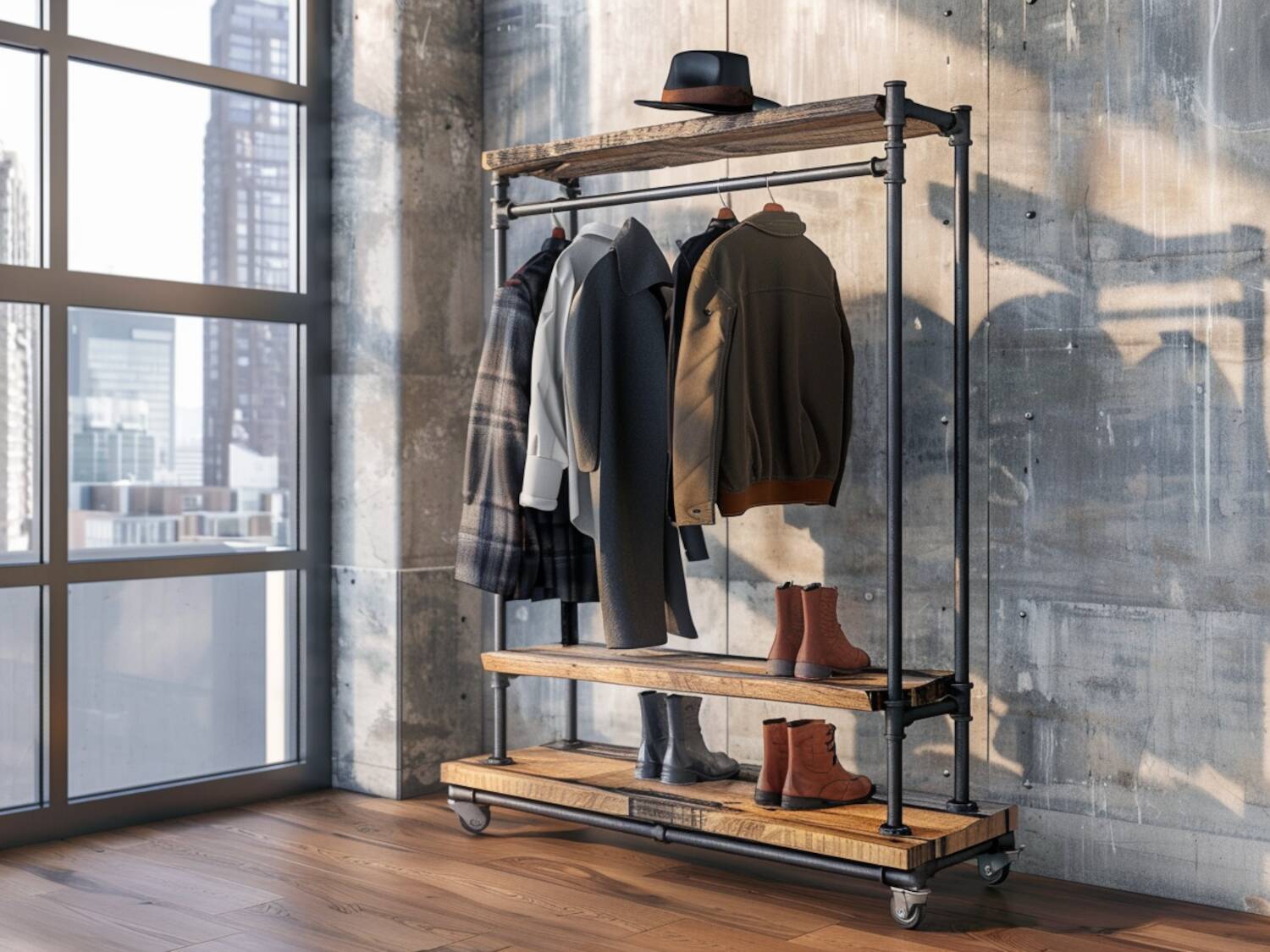 Gotowy dekoracyjny wieszak na ubrania z rur stalowych może być wykorzystany na wiele sposobów. Jego industrialny charakter sprawia, że świetnie wpisze się w różnorodne aranżacje wnętrz, dodając im niepowtarzalnego stylu.