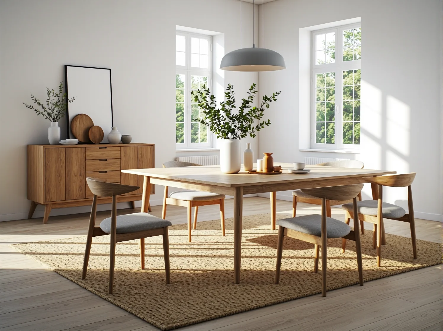Dowiedz się, jak wybrać idealny stół, krzesła i oświetlenie do jadalni w stylu skandynawskim. Poznaj trendy 2026 i stwórz przytulną przestrzeń w duchu scandi.